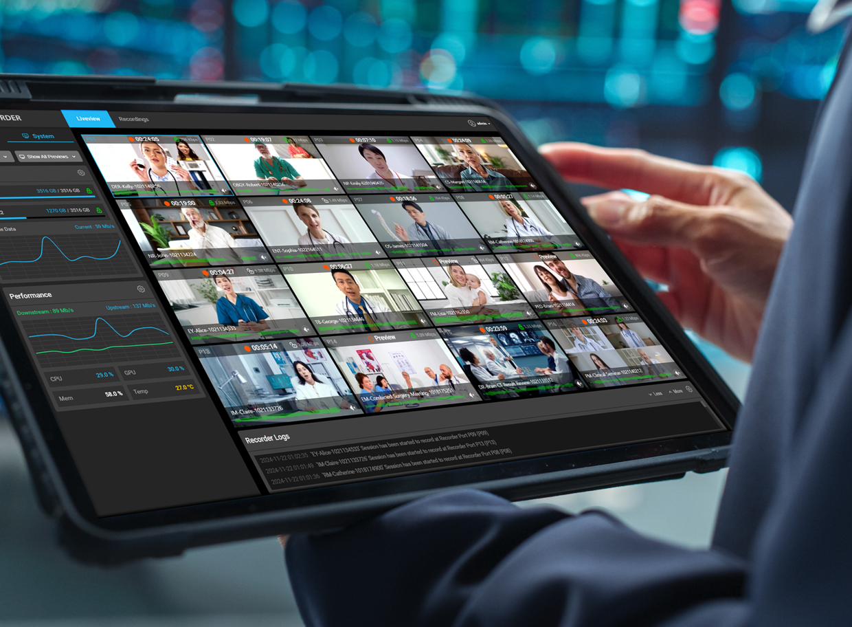 회의가 시작되면 관리자는 웹 기반 대시보드를 통해 회의 상황을 ‘실시간 모니터링’할 수 있습니다. 또한 ‘실시간 재전송’ 기능을 구성하면 현장에 올 수 없는 원격 사용자들에게 스트리밍 플랫폼을 통해 대규모 실시간 중계도 가능합니다.